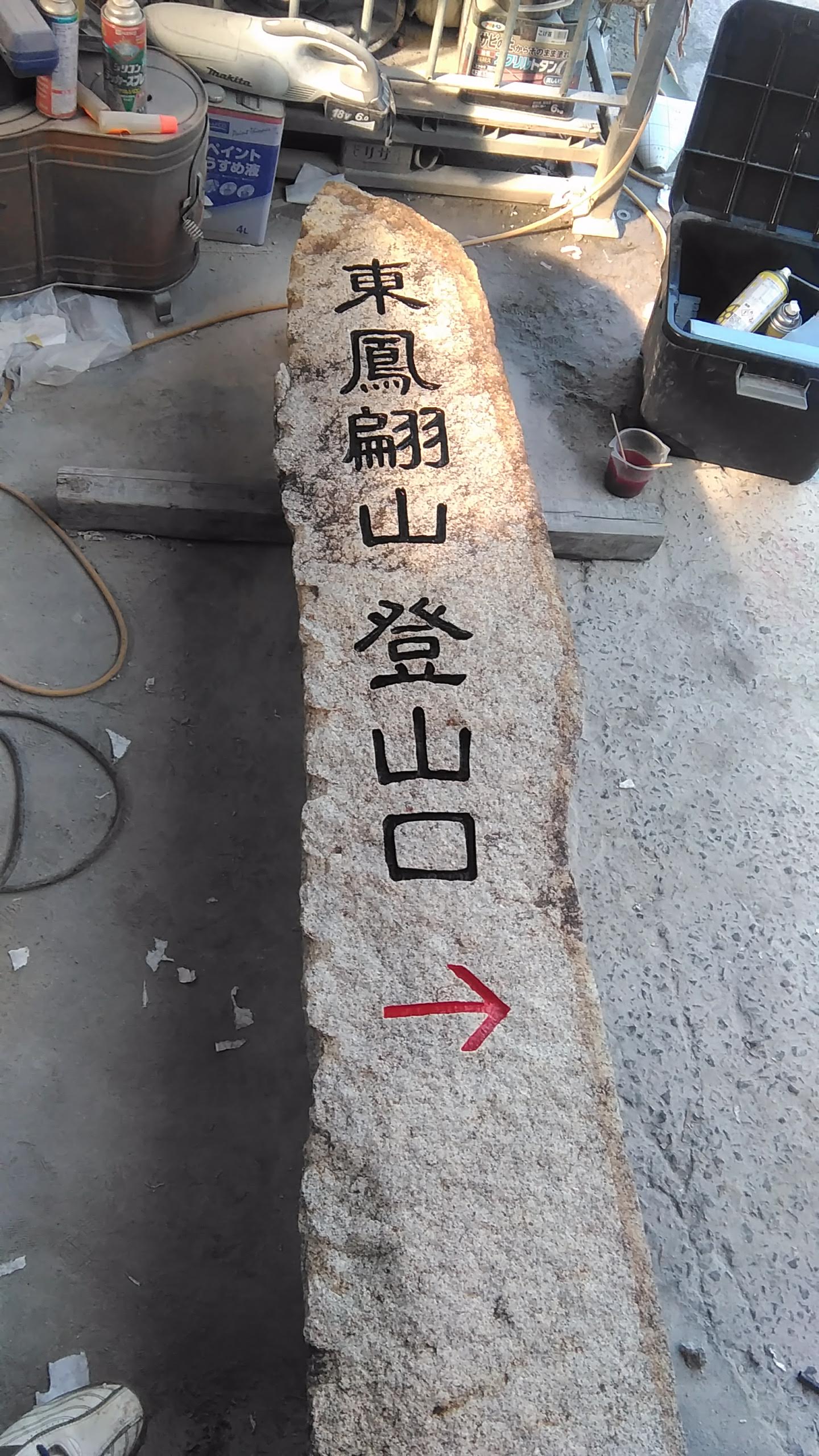 ごつごつした面への作業なので、いつものブラストでの彫刻ではありません。
