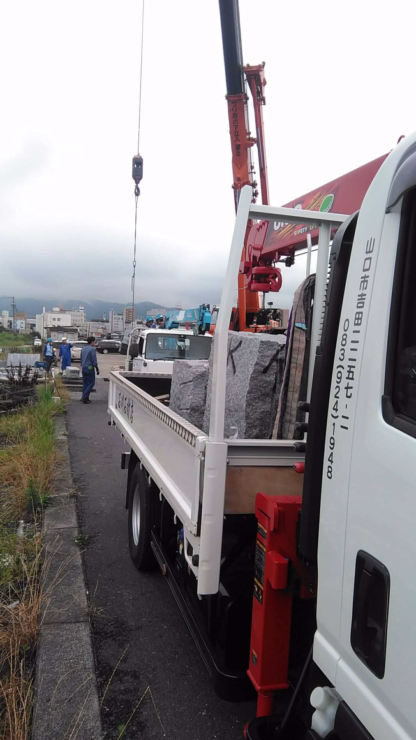 本日は、山口県産徳山みかげの原石が港にあがったので引き取りに行きました。
